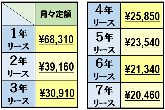 ※上記料金表は月走距離が、個人のお客様 750㎞/会社様 1,500㎞ 設定の場合です。