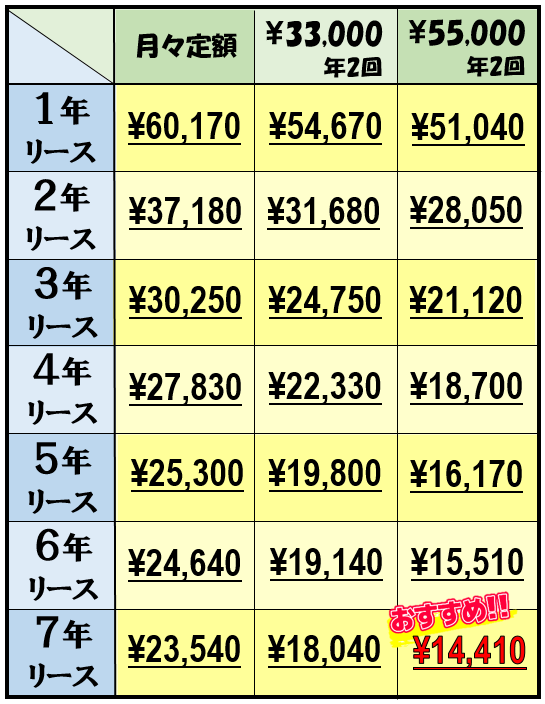※上記オプションカラーの月々料金は、7年契約の場合です。