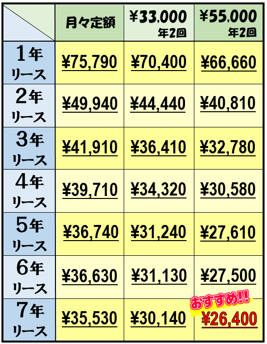 ※上記オプションカラーの月々料金は、7年契約の場合です。
