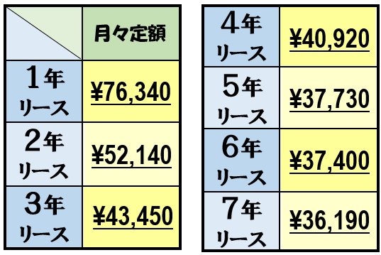 ※上記料金表は月走距離が、個人のお客様 750㎞/会社様 1,500㎞ 設定の場合です。