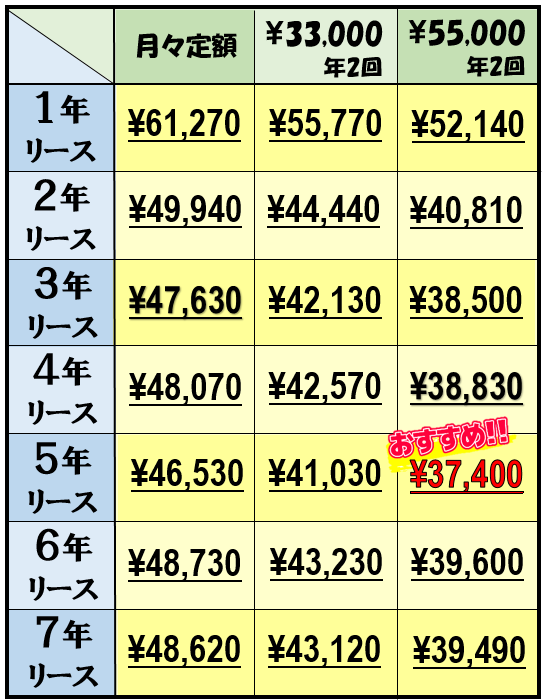 ※上記オプションカラーの月々料金は、7年契約の場合です。