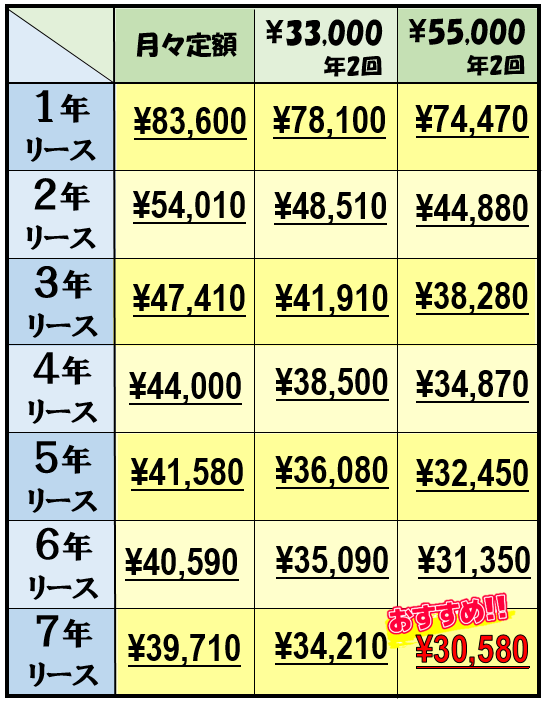 ※上記オプションカラーの月々料金は、7年契約の場合です。