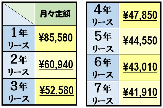 ※上記料金表は月走距離が、個人のお客様 750㎞/会社様 1,500㎞ 設定の場合です。