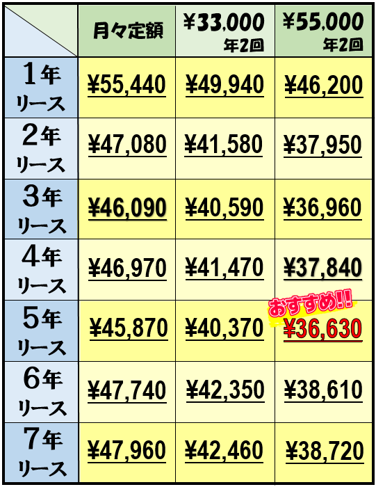 ※上記オプションカラーの月々料金は、7年契約の場合です。
