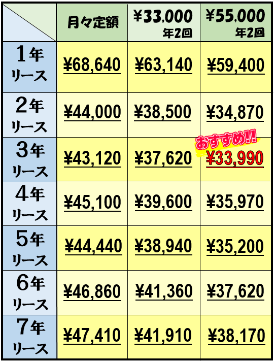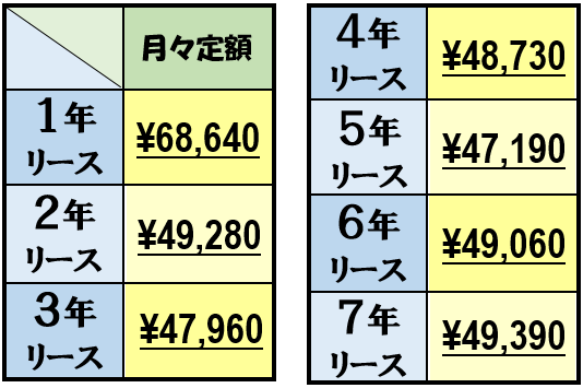 ※上記オプションカラーの月々料金は、7年契約の場合です。