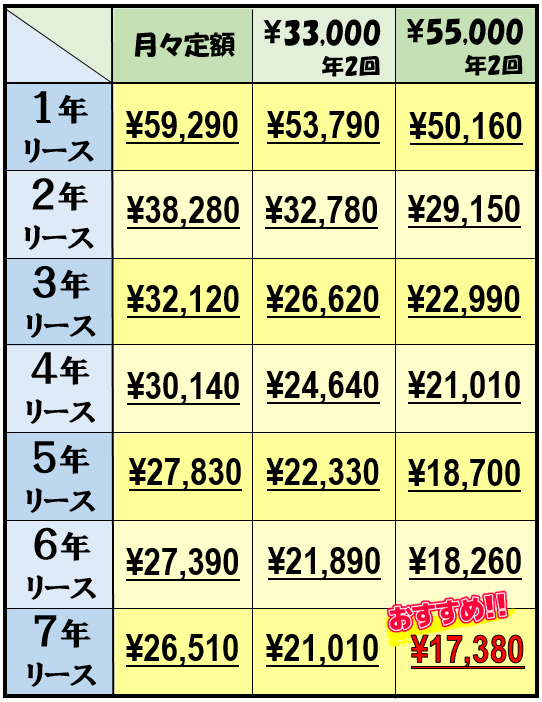 ※上記オプションカラーの月々料金は、7年契約の場合です。