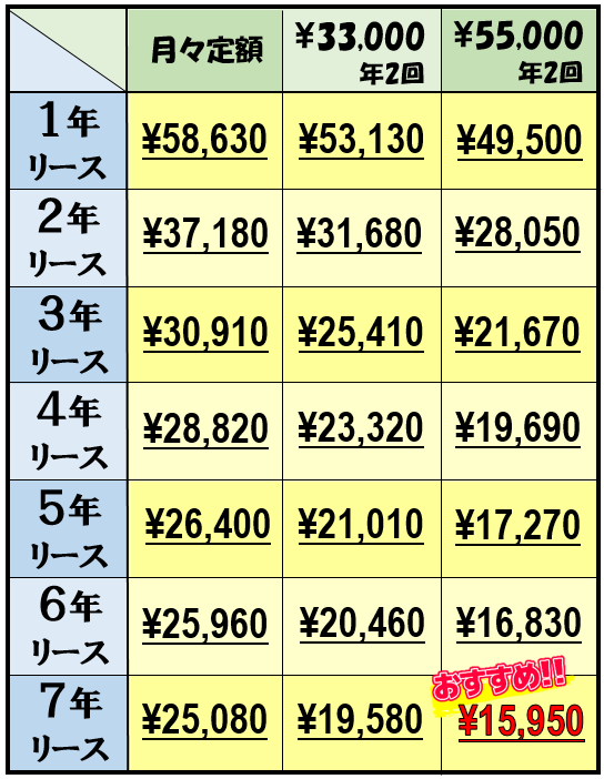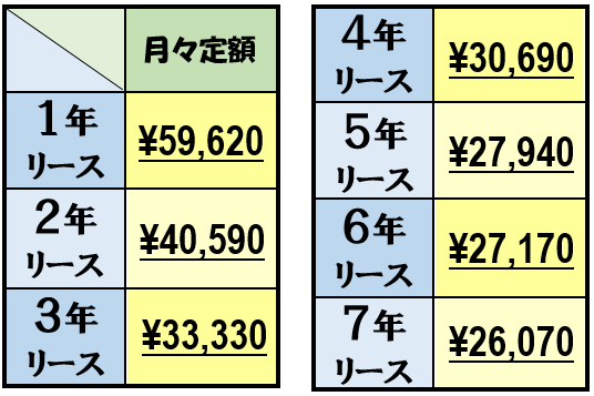 ※上記オプションカラーの月々料金は、7年の場合の料金です。