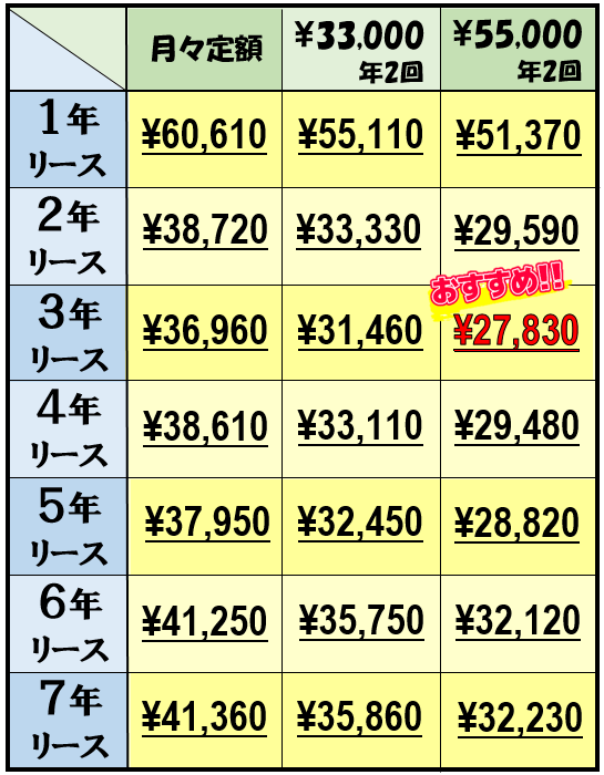 ※上記オプションカラーの月々料金は、7年契約の場合です。