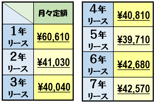 ※上記料金表は月走距離が、個人のお客様 750㎞/会社様 1,500㎞ 設定の場合です。