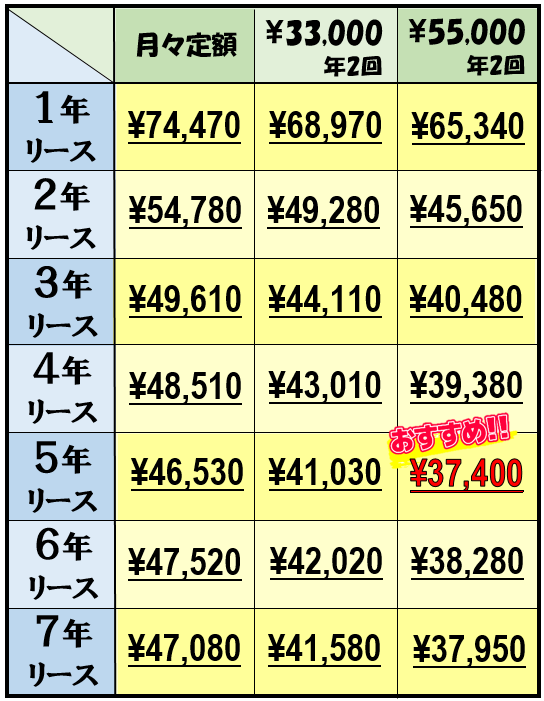 ※上記オプションカラーの月々料金は、7年契約の場合です。