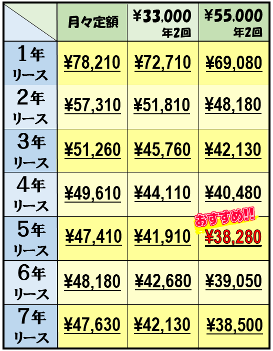 ※上記オプションカラーの月々料金は、7年契約の場合です。